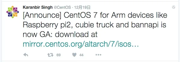来自 CentOS 团队的 Karanbir Singh 宣布,基于 ARM 硬件架构的 CentOS 7 Linux 系统已经发布!