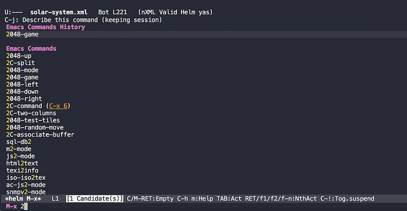 一些使用者喜欢它,但是其他人没有这么大的使用热情。我是后者的一部分。但在拥有这样一个庞大的追随者的情况下,是不能不提到它的。Helm 旨在完全变换你的 Emacs 使用体验。简单来说,Helm 是一个在 Emacs 中帮助你快速找到一个文件或命令的框架。根据你的输入,它将尝试使用词语自动完成来引导你将大脑的念头变为行动。起初感觉有点奇怪,但对一些人来说,Helm 本身就是一个信仰。虽然我不是 Helm 的粉丝,我欣赏 helm-occur 这一个伟大的工具可以在一个大文档搜索字符串并且在一个单独的缓冲区显示所有匹配结果,以便很容易在它们之间跳转。如果你正在寻找一个快速演示来了解 Helm 能做什么,我推荐这篇文章