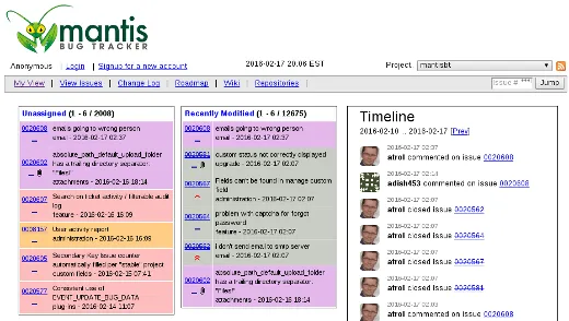 Mantis是这次合集中我们将看到的最后一个工具,基于PHP,且有16年历史。作为另一个支持多种不同版本控制系统和事件驱动通知系统的bug跟踪管理软件,Mantis有一个与其他工具类似的功能设置。虽然它不本身包含wiki,但它整合了很多流行的wiki平台且本地化到多种语言。