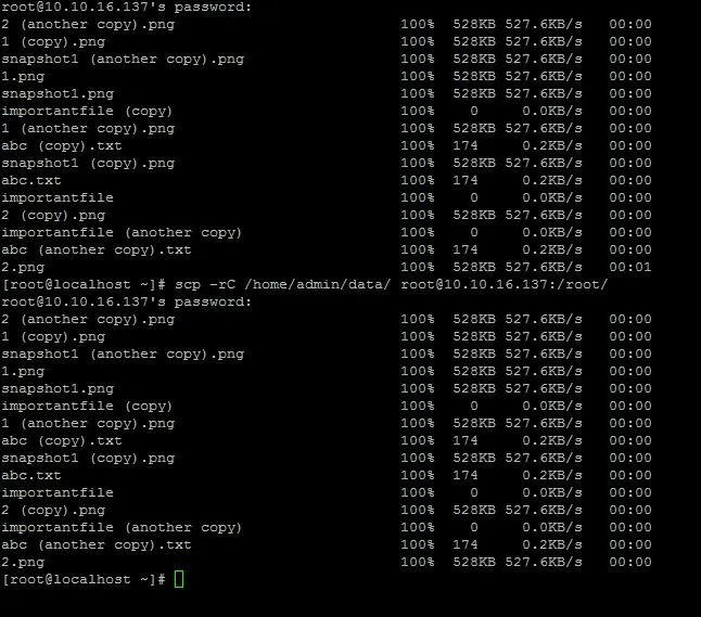[root@localhost ~]# scp importantfile admin@10.0.0.6:/home/admin/