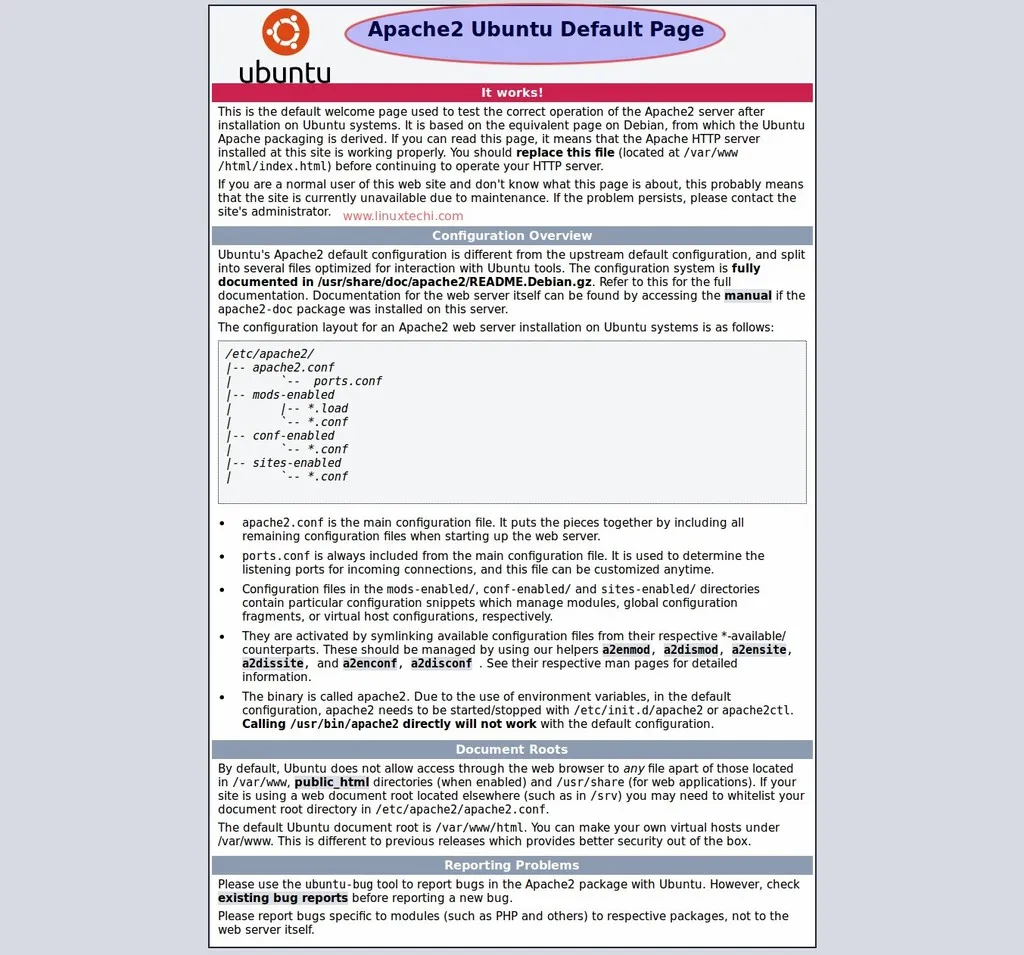 linuxtechi@ubuntu:~$ sudo apt install apache2 -y