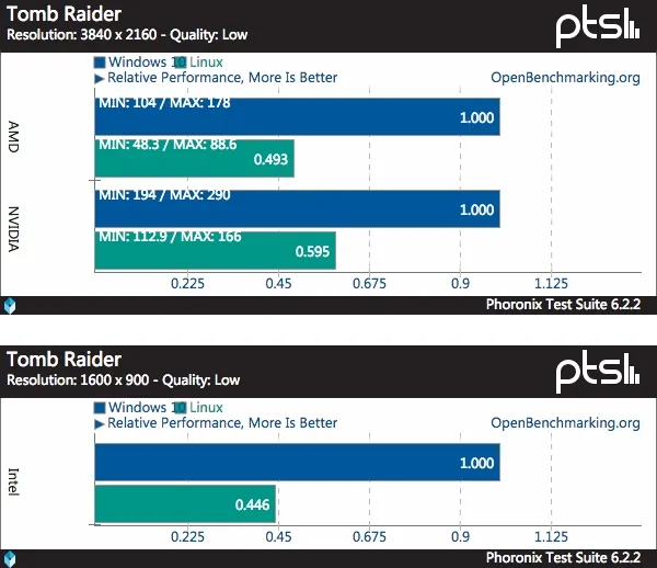 这简直太糟糕了,如此多的 Linux 游戏与其对应的 Windows 下的游戏相比性能差的不是一点半点,不管是什么显卡或驱动都是这样。希望过些时间下一代的游戏能够借助 Vulkan 提升其性能表现吧。