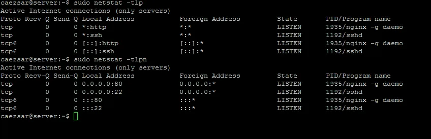 2、 然后输入 netstatsystemctl 命令,确认 Nginx 进程已经启动并且绑定在 80 端口。