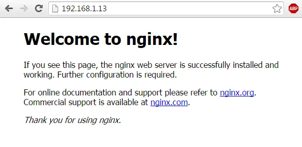 当你确认服务进程已经启动了,你可以打开一个浏览器,使用 HTTP 协议访问你的服务器 IP 地址或者域名,浏览 Nginx 的默认网页。
