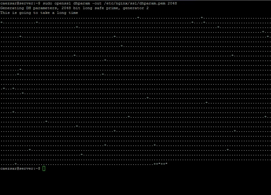 $ sudo openssl dhparam -out /etc/nginx/ssl/dhparam.pem 2048
