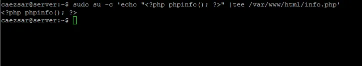 $ sudo su -c 'echo "<?php phpinfo(); ?>" |tee /var/www/html/info.php'