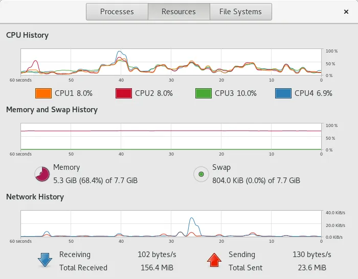 当你启动系统监视器的时候,它会向你展示所有正在运行的进程及其消耗的内存。