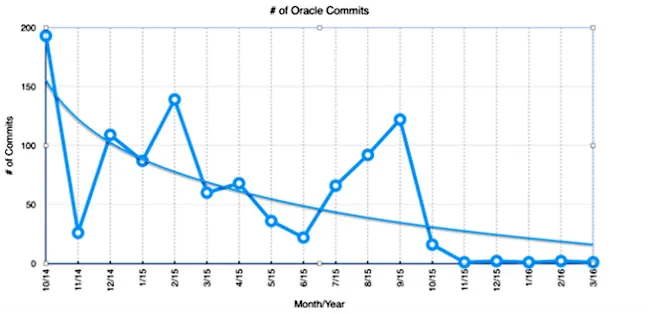 据 Java EE 守护者的观察,甲骨文在其自己的 JavaServer Faces 开发上的几个月前就陷入了完全停止,如下图: