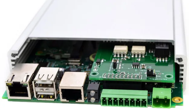 就像 Kickstarter 页面里描述的:“比起在板边插满带 IO 信号接头的 HAT 板,我们更愿意把同样的 IO 信号接到另一个接头,它直接接到绿色的工业接头上。” 另外,“通过简单地延长卡上的插脚长度(抬高),你将来可以直接扩展 IO 集 – 这些都不需要任何排线!”Embedded Micro 表示。