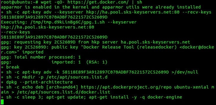wget -qO- https://get.docker.com/ | sh