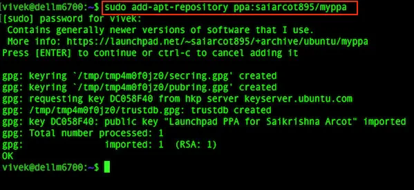 $ sudo add-apt-repository ppa:saiarcot895/myppa