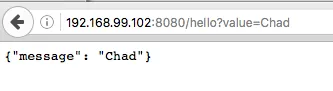 $ curl -v -X GET "http://192.168.99.100:8080/hello?value=Chad"
