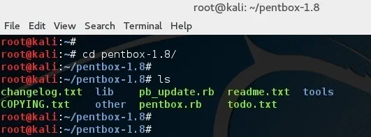 root@kali:~# tar -zxvf pentbox-1.8.tar.gz