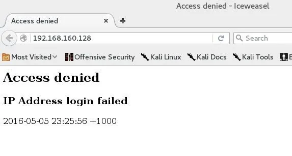 这样就在 80 端口上开启了一个蜜罐。打开浏览器并且打开链接 http://192.168.160.128 (这里的 192.168.160.128 是你自己的 IP 地址。)你应该会看到一个 Access denied 的报错。