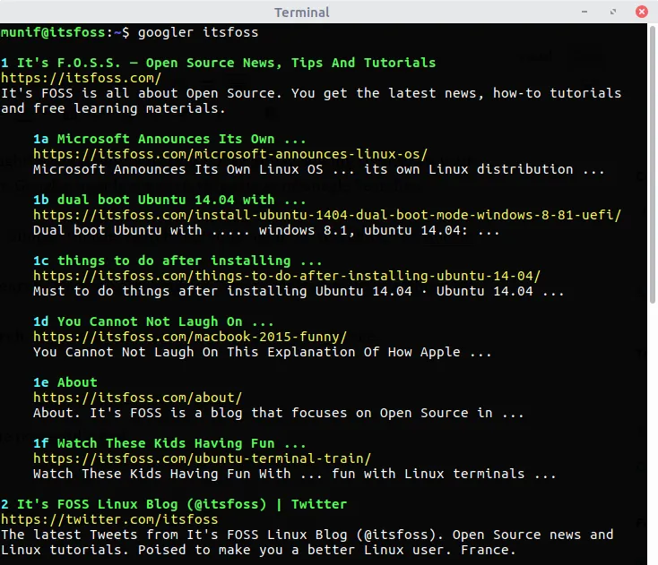 googler -w itsfoss.com