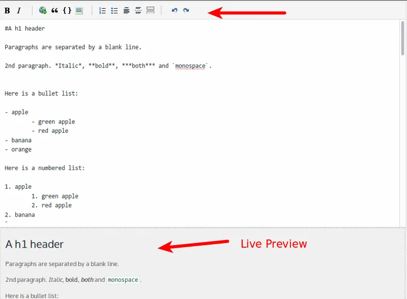 如果你在配置选项中没有启用 markdown 的帮助栏,你将不会看到 markdown 格式化后的实时预览。然而,只要你的语法是正确的,当你保存或者发布文章的时候,你的 markdown 就会转换成正确的 HTML。