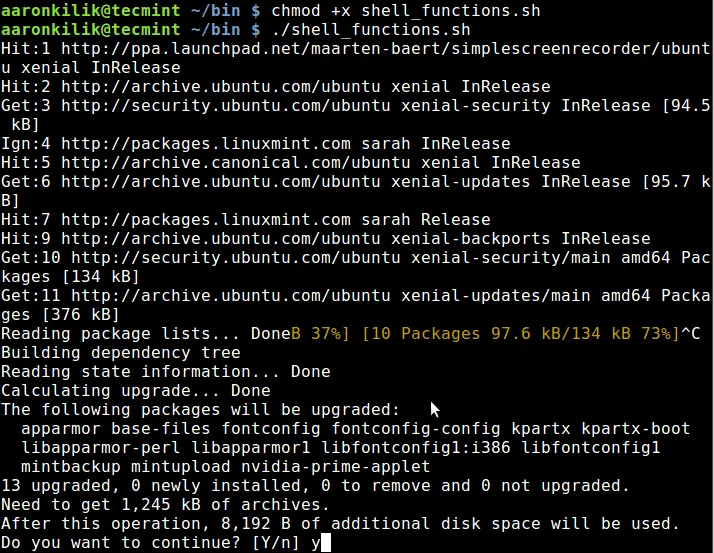 取代通过命令行执行两条命令:sudo apt update 和 sudo apt dist-upgrade,我们在脚本内写了一个像执行一条单一命令一样来执行两条命令的 shell 函数 upgrade_system。