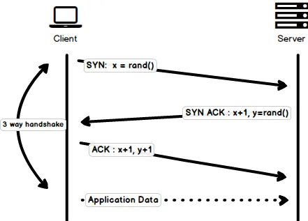 • ACK – 客户端在从服务器接受到 y 之后把 y 加上 1 作为一个 ACK 包返回给服务器。