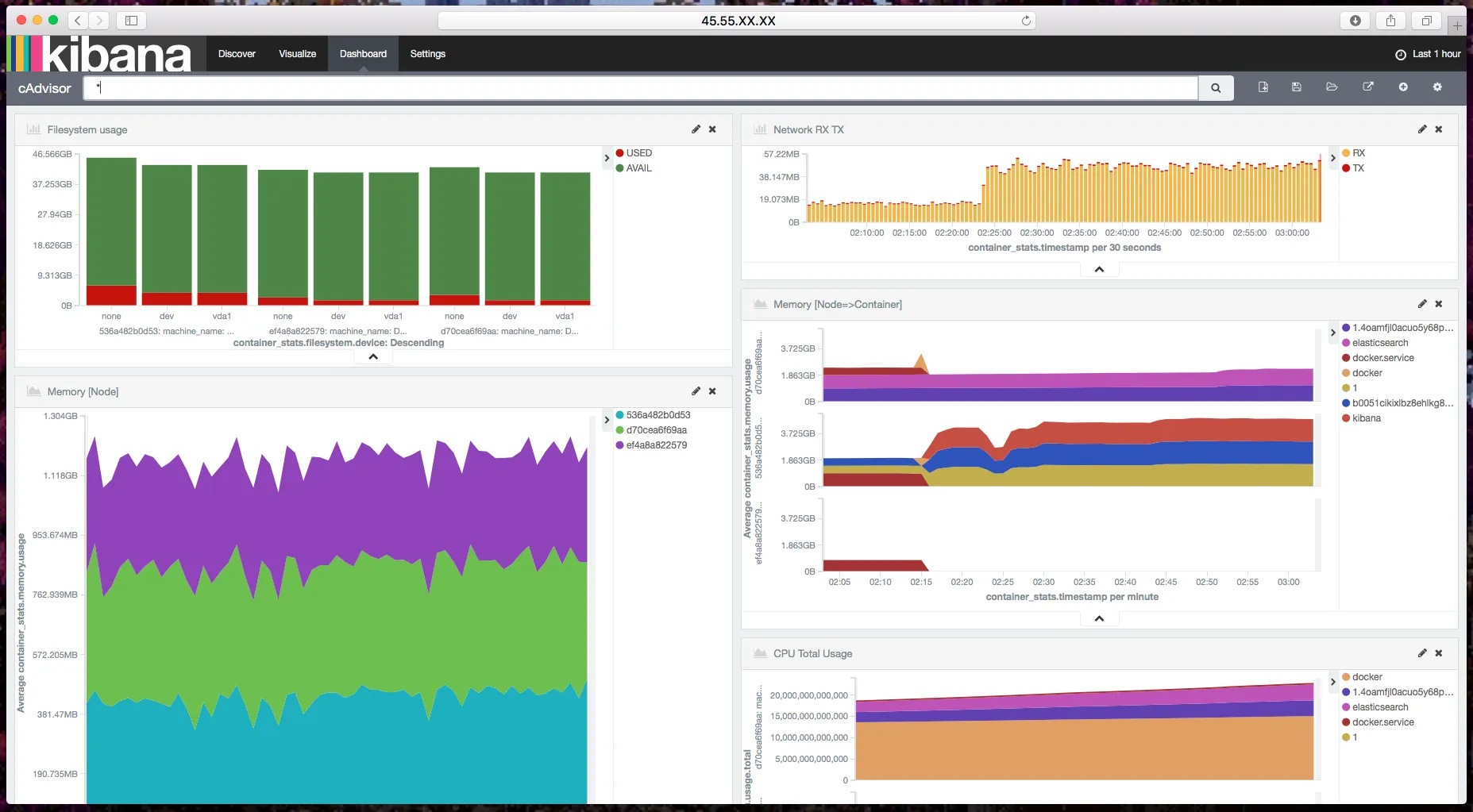 docker exec $(docker ps | grep cadvisor | awk '{print $1}' | head -1) curl -XPUT http://elasticsearch:9200/.kibana/index-pattern/cadvisor -d '{"title" : "cadvisor*", "timeFieldName": "container_stats.timestamp"}'