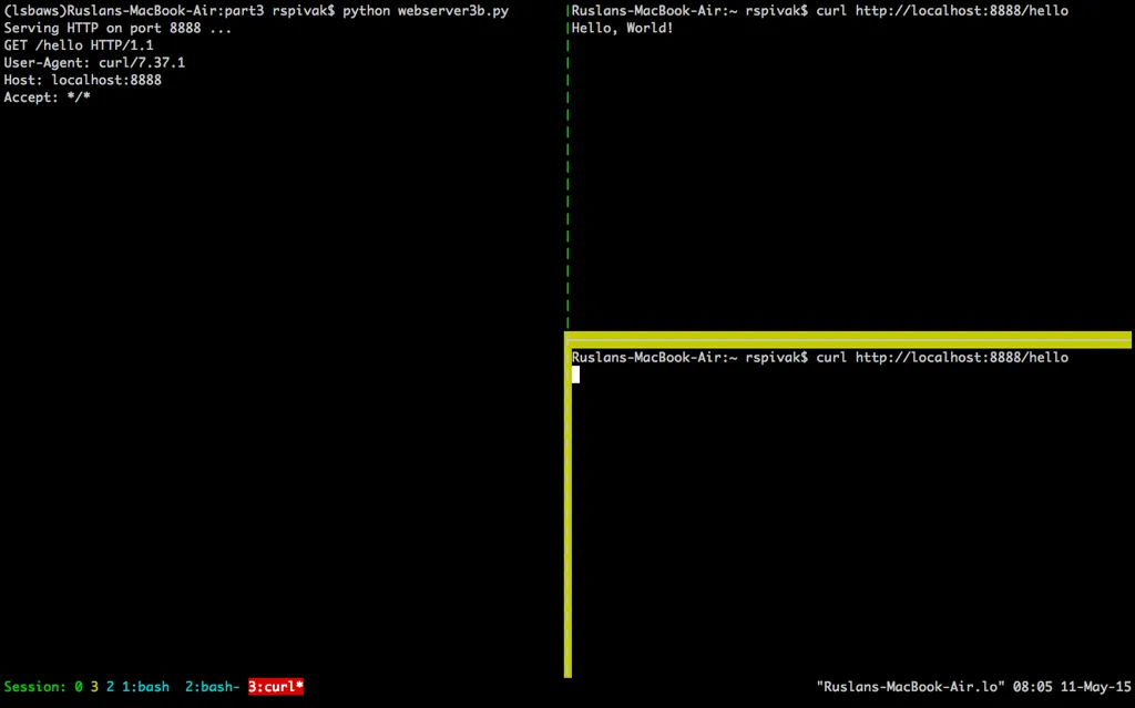 我们在终端窗口中运行 webserver3b.py: