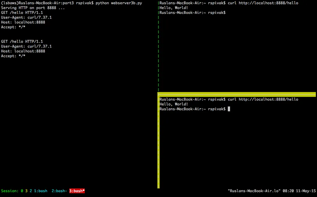 在本系列的第二部分中,你创造了一个可以处理基本 HTTP GET 请求的、朴素的 WSGI 服务器。当时我问了一个问题:“你该如何让你的服务器在同一时间处理多个请求呢?”在这篇文章中,你会找到答案。系好安全带,我们要认真起来,全速前进了!你将会体验到一段非常快速的旅程。准备好你的 Linux、Mac OS X(或者其他 *nix 系统),还有你的 Python。本文中所有源代码均可在 GitHub 上找到。