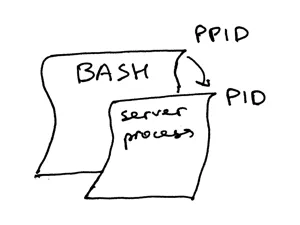 ps 命令显示,我们刚刚只运行了一个 Python 进程 webserver3b.py。当一个进程被创建时,内核会为其分配一个进程 ID,也就是 PID。在 UNIX 中,所有用户进程都有一个父进程;当然,这个父进程也有进程 ID,叫做父进程 ID,缩写为 PPID。假设你默认使用 BASH shell,那当你启动服务器时,就会启动一个新的进程,同时被赋予一个 PID,而它的父进程 PID 会被设为 BASH shell 的 PID。