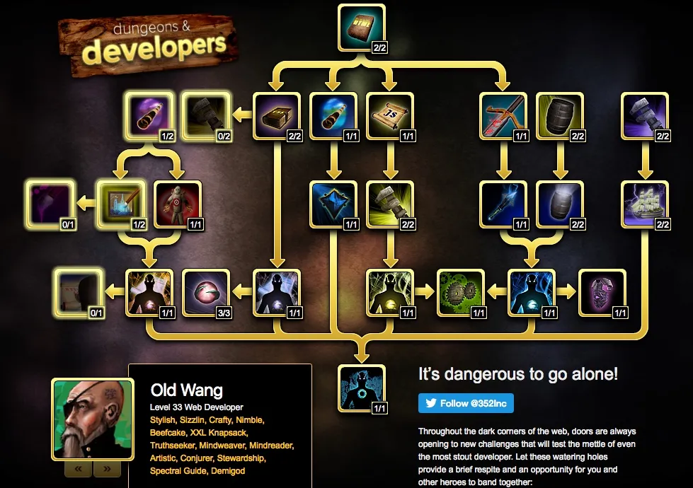 作为专业人员,我们不少人喜欢玩角色扮演游戏,比如 D&D 这样的,那么有没有想过把你在 Web 前端方面的技能、经验也像游戏里面一样的技能树一样点亮呢?