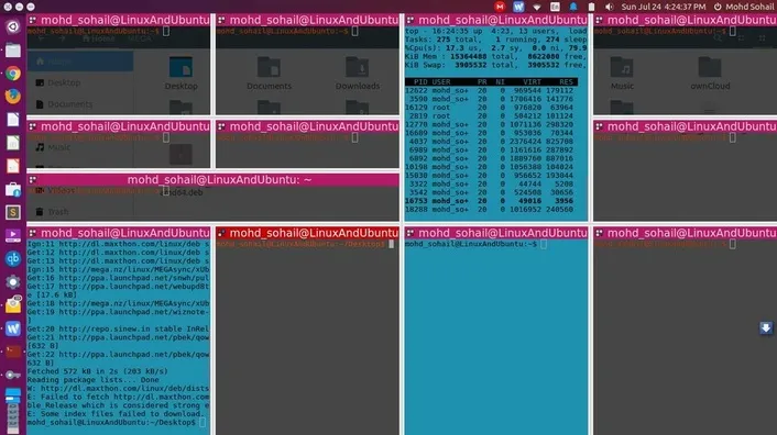 安装好 Terminator 之后,你可以简单的在一个窗口打开多个终端。只需要右键点击并切分。