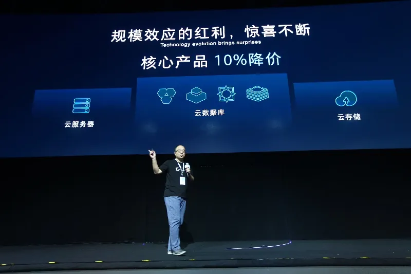 当然,还有一个消息就是,降价了。技术让阿里云成本更低:核心产品降价10%。同时对于云服务,云数据库,云安全及云储存产品两年 7 折,三年 5 折。核心产品按量付费直接降价50%。据说,过去一年已经降价 17 次了!