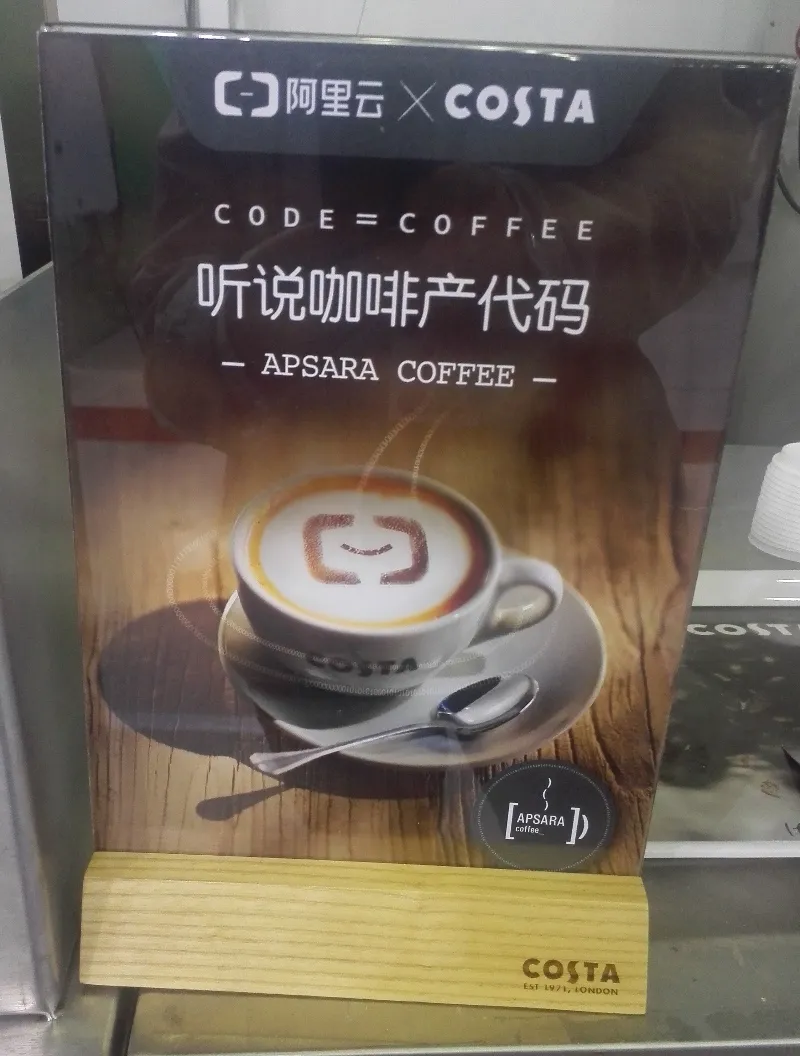 最后,还有个小花絮,这场大会里, Costa 咖啡专门定制了飞天(APSARA)咖啡——“听说咖啡产代码”,喏就是这个: