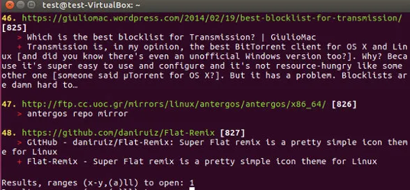 要打开一个书签,首先要搜索。这需要用 -s 选项。运行下面的命令来搜索: