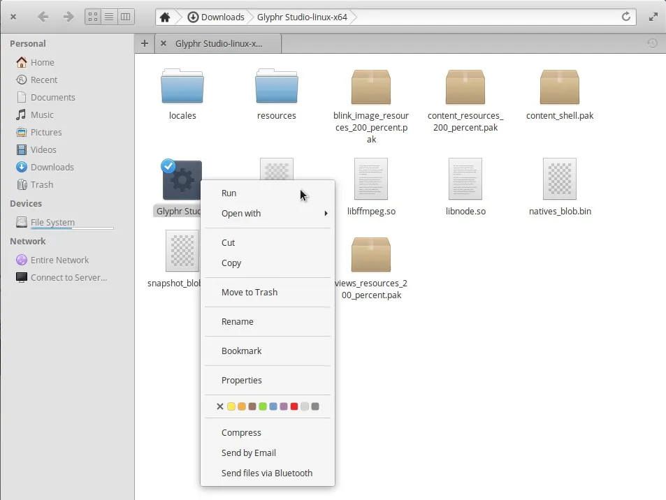首先,从官方 Git 库下载 Glyphr。它提供 32 位和 64 位版本的二进制格式。完成下载后,进入下载文件夹, 解压文件,进入解压后的文件夹,右键点击 Glyphr Studio,选择“Run”。