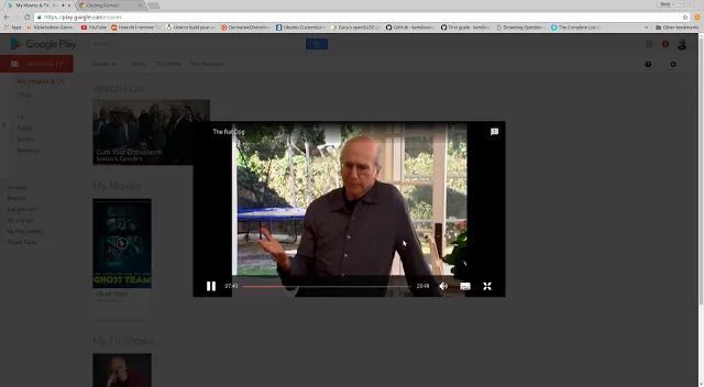 本节的第一个图片说明了原因。这张图片里,我试图观看 Google Play 商店的 “Curb Your Enthusiam” 视频,可惜的是各种 DRM 和其它一些问题导致了视频无法播放。