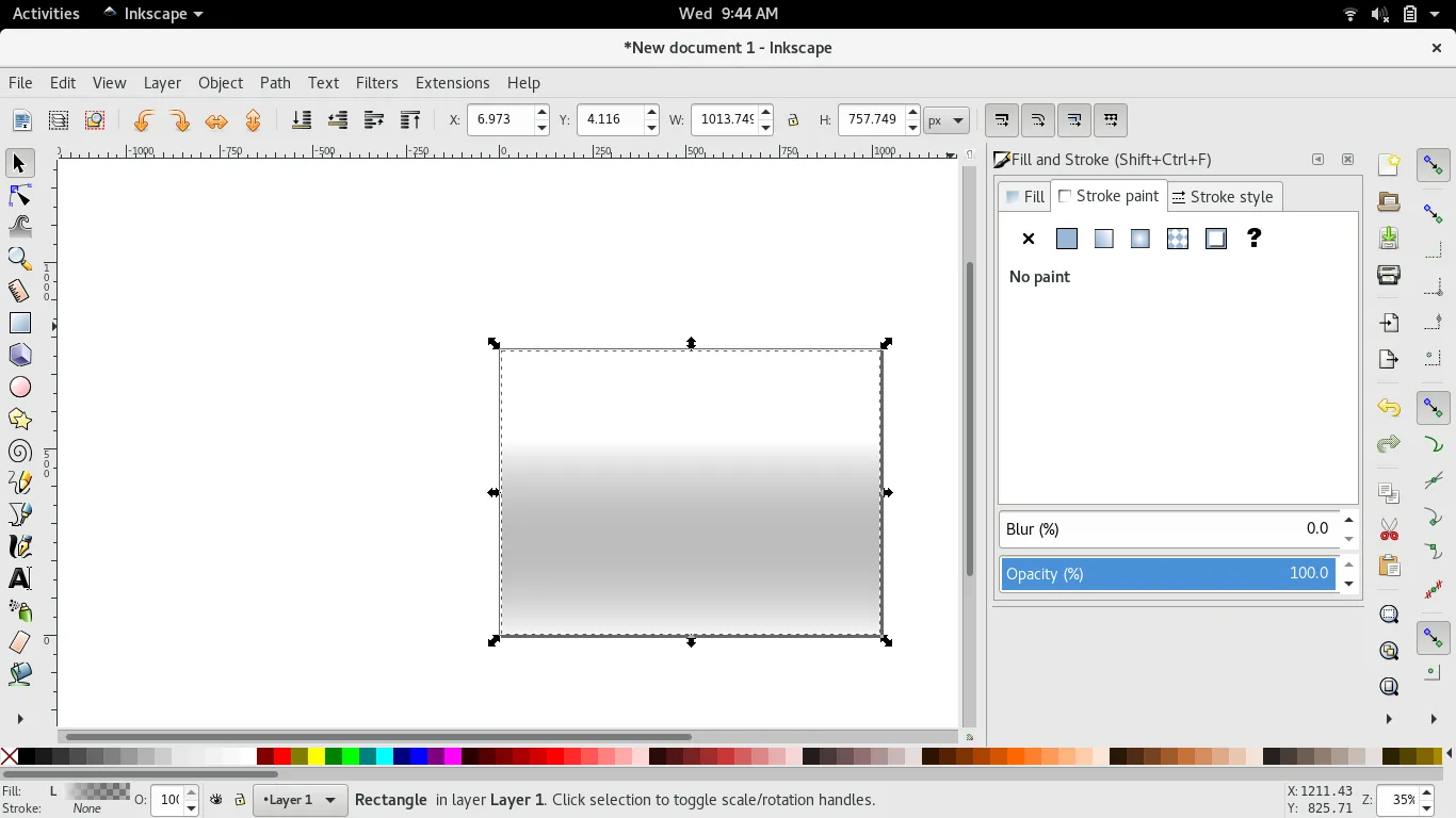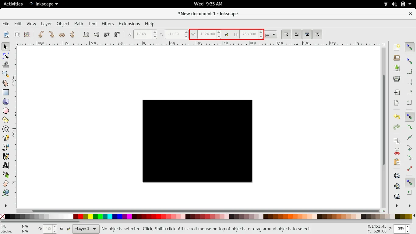 回顾先前的教程时,你可能会注意到主画板上的默认文档尺寸是一个黑色边框的矩形。Inkscape 中默认文档的大小是 A4 纸大小: