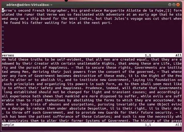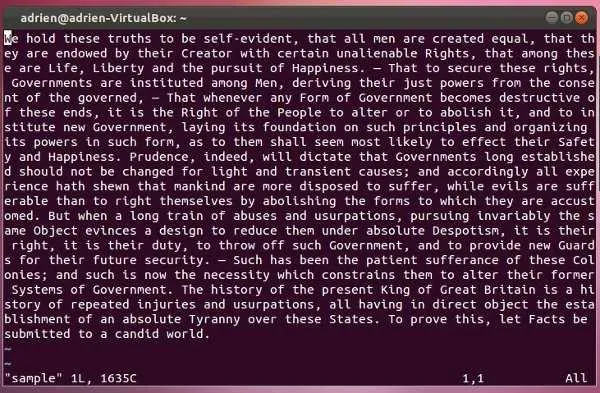 现在,我们退出 Vim 再打开一个文本文件。为此,你只需把想要编辑的文件名加在命令后面即可: