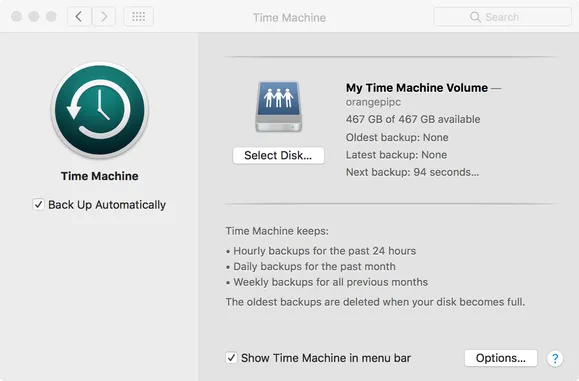 最后,打开 Mac 上的 Time Machine,然后“选择备份硬盘”,选择你的 Orange pi。
