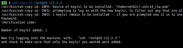 首先,我们将本机的公钥复制到远程机器的 authorized_keys 文件中。