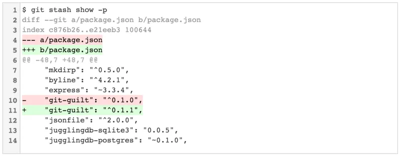 到了 Git v2.11,你不再需要使用完整的 stash@{n} 语句。相反,你可以通过一个简单的整数指出该搁置在 stash reflog 中的位置来引用它们。