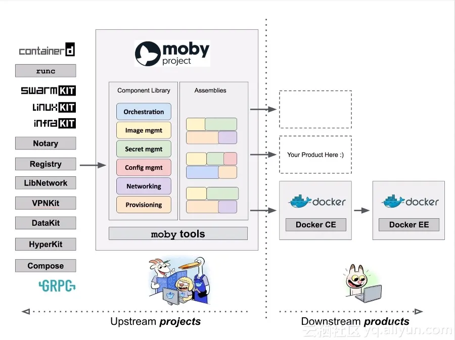 - Docker 公司将 Docker 项目改名为 Moby Project,Docker 这个名称保留用作其产品名