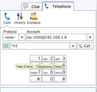 回到 Yate 客户端,我呼叫了一个外线并成功完成了这个呼叫。