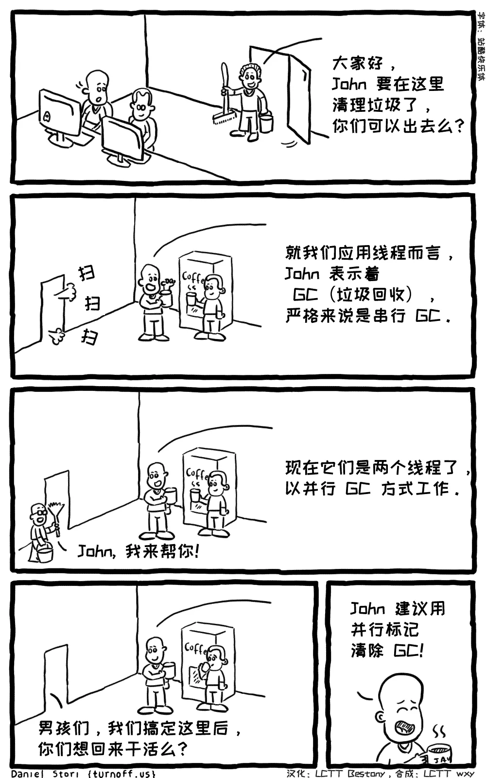 这篇漫画生动的解释了 Java 的垃圾回收机制:什么是垃圾回收(GC)、什么是并行垃圾回收以及什么是垃圾回收的标记清除算法。
