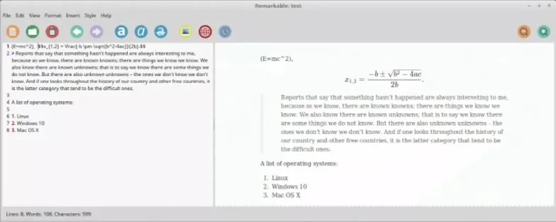 让我们从 Remarkable 开始。Remarkable 是一个 apt 软件包的名字,它是一个相当有特色的 Markdown 编辑器 — 它并不支持 Markdown 的全部功能特性,但该有的功能特性都有。它使用和 GitHub Markdown 类似的语法。