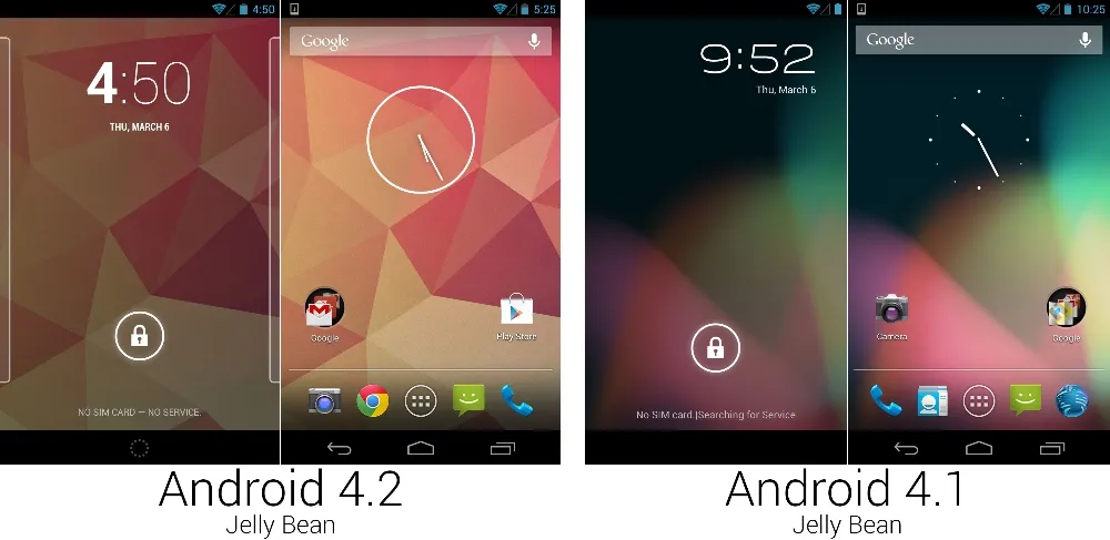 安卓平台成熟的脚步越来越快,谷歌也将越来越多的应用托管到 Play 商店,需要通过系统更新来更新的应用越来越少。但是不间断的更新还是要继续的,2012 年 11 月,安卓 4.2 发布。4.2 还是叫做“果冻豆”,这个版本主要是一些少量变动。