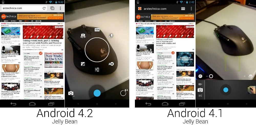 原来的自带浏览器在一段时间内对 Chrome 的模仿上下了不少功夫——它引入了许多 Chrome 的界面元素,许多 Chrome 的特性,甚至还使用了 Chrome 的 javascript 引擎——但安卓 4.2 来临的时候,谷歌认为安卓版的 Chrome 已经准备好换下这个模仿者了。表面上看起来没有多大不同;界面看起来不一样,而且早期版本的 Chrome 安卓版滚动起来没有原浏览器顺畅。不过从深层次来说,一切都不一样。安卓的主浏览器开发现在由 Google Chrome 团队负责,而不是作为安卓团队的子项目存在。安卓的默认浏览器从绑定安卓版本发布、停滞不前的应用变成了不断更新的 Play 商店应用。现在甚至还有一个每个月接收一些更新的 beta 通道。