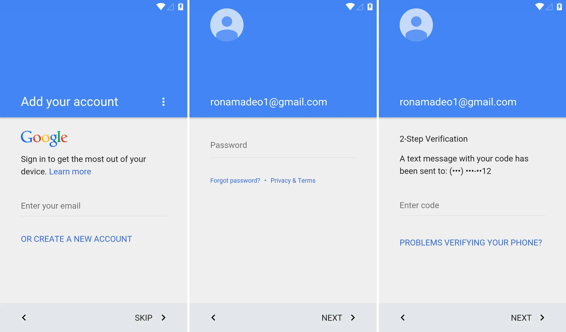 开机设置经过了大翻新,它不止是为了跟上 Material Design 指南,还是“面向未来”的,这样不管未来谷歌采用什么新的登录和验证方案,它都能够适应。记住,写“安卓编年史”的部分原因就是一些旧版安卓已经不再能工作了。这些年来,谷歌已经为用户升级了更佳加密的验证方案以及二次验证,但添加这些新的登录要求破坏了旧客户端的兼容性。很多安卓特性要求访问谷歌云设施,所以你没法登录的话,像安卓 1.0 的 Gmail 这样的就没法工作了。