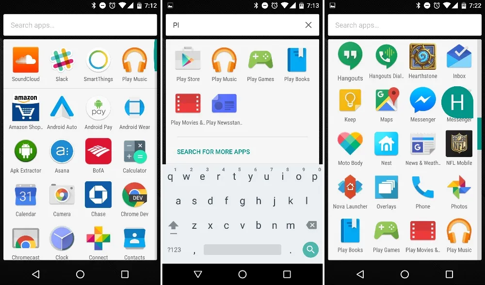 谷歌将应用抽屉从页面导航的横向布局还原回了单页竖直滚动表的形式。早期版本的安卓用的都是竖直滚动表的形式,直到谷歌在蜂巢中改成了横向页面系统。滚动单页面让人更容易从很多应用中找到目标。一项“快速滚动”的特性同样好用,它可以让你拖动滚动条来激活字母索引。新的应用抽屉布局也用到了小部件抽屉上。考虑到旧系统中小部件轻松就超过了 15 页,这是个大改进。