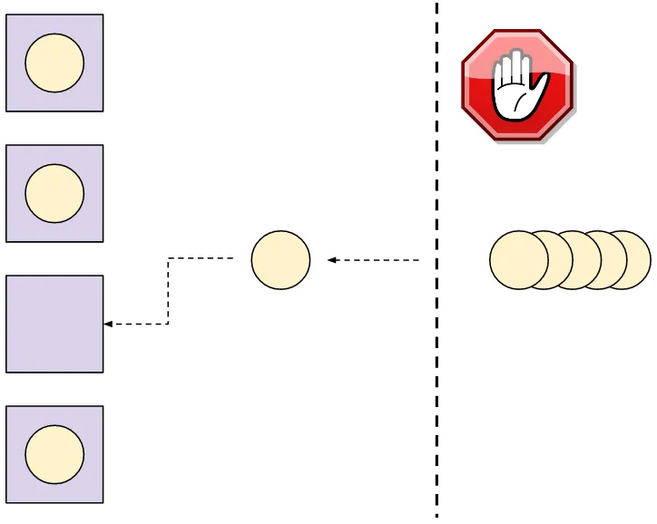 非常明显,线程池的定义就是一种按比例限制的机制。我们可以提前设定服务器所能拥有的线程数。那么这就是并发连接的最多的客户端数 —— 其它的客户端就要等到线程空闲。如果我们的池中有 8 个线程,那么 8 就是服务器可以处理的最多的客户端并发连接数,哪怕上千个客户端想要同时连接。