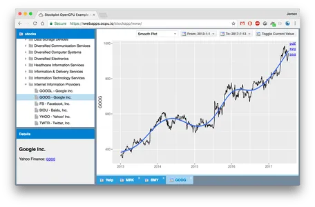 OpenCPU 系统的旗舰是 OpenCPU 服务器:它是一个成熟且强大的 Linux 栈,用于在系统和应用程序中嵌入 R。因为 OpenCPU 是完全开源的,我们可以在 DockerHub 上构建和发布。可以使用以下命令启动一个可以立即使用的 OpenCPU 和 RStudio 的 Linux 服务器(使用端口 8004 或 80):
