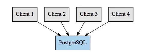 这里我们的客户端直接连接到 PostgreSQL,这样每个客户端请求一个连接。