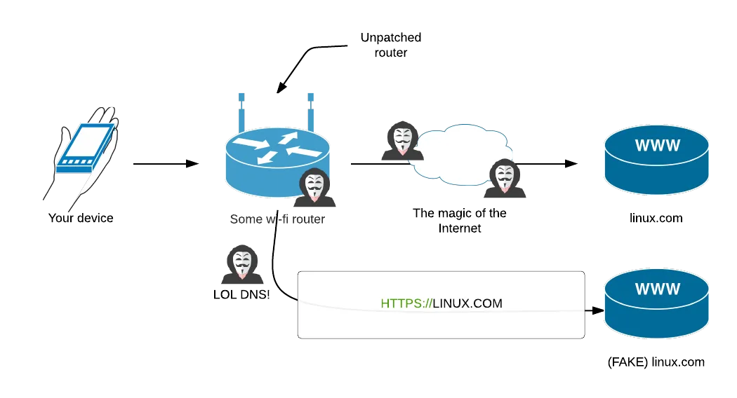 因此,如果你不能信任固件太旧的 Wi-Fi 和/或无线路由器,我们能做些什么来确保发生在你的设备与常说的互联网之间的“最后一公里”通讯的完整性呢?